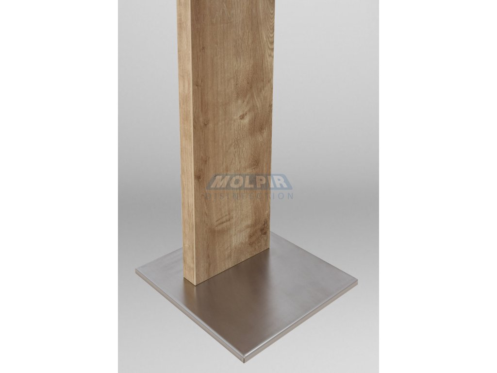 - Stabilný stojan pre umiestnenie na podlahu, kombinácia brúsenej nehrdzavejúcej ocele a dreva (možnosť voľby dekoru dreva), vyrobený na Slovensku.